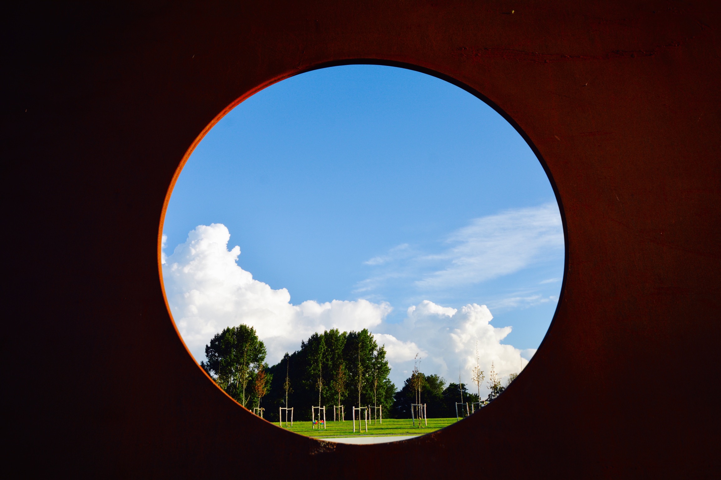 In de lus van het lint ligt een intiem amfitheater. Centraal in het amfitheater ligt het herdenkingsteken. Het MH17-gedenkteken bestaat uit een wand van gebogen cortenstaal en een glimmend roestbestendig schotelvormig object. Dit object heeft een spiegelend vlak, de iris. Alle namen van de slachtoffers zijn hierin gegraveerd.