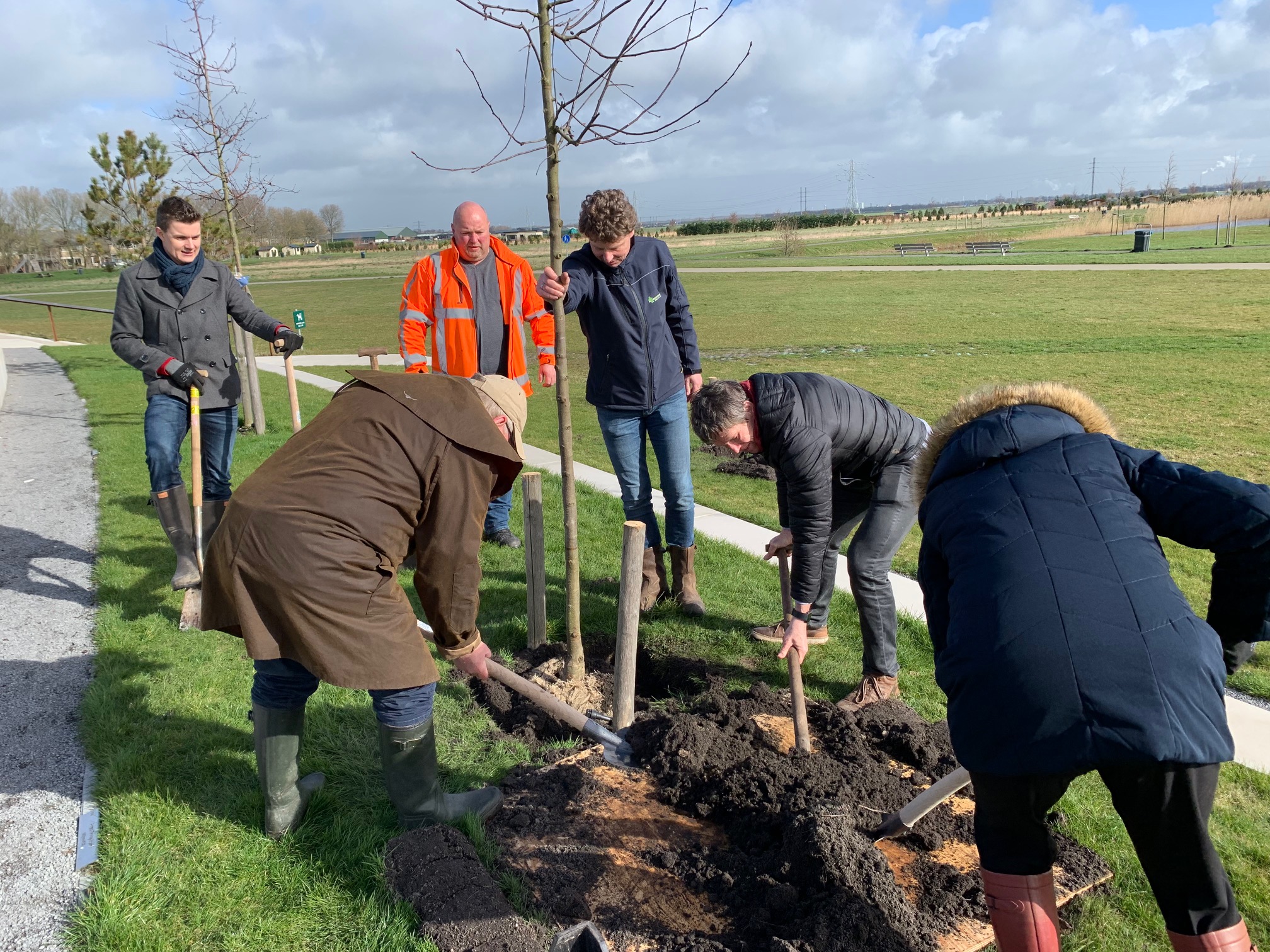 Vandaag hebben nabestaanden bomen geplant op het Nationaal Monument MH17 in Vijfhuizen, ter vervanging van eerder afgestorven bomen. Zaterdag 9 maart zullen ook bomen geplant worden door nabestaanden. Op de foto de ambassadeur van Australië Matthew Neuhaus en eerste secretaris Anthony Pobjie, die namens Australische nabestaanden 7 bomen hebben herplant.
